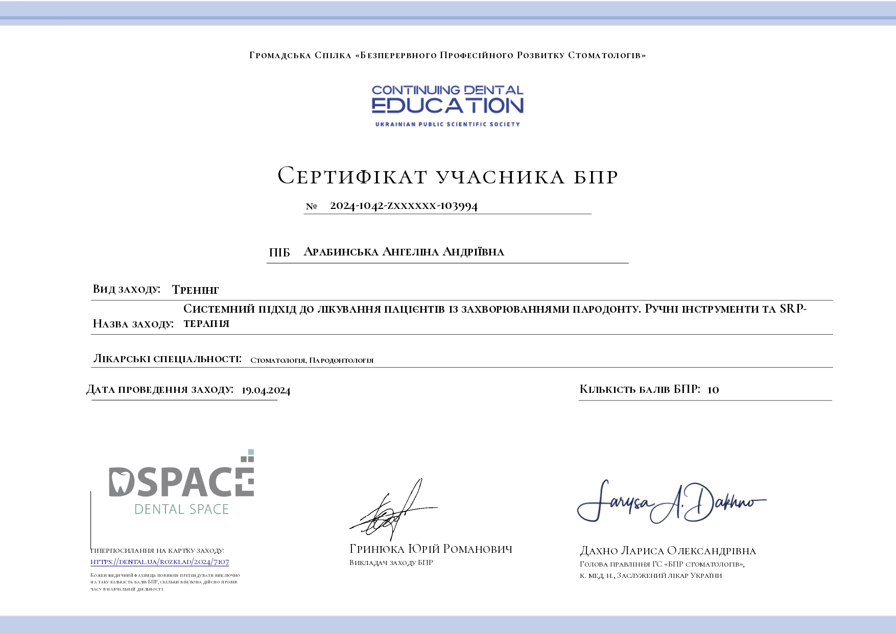2023 год – «Вектор-терапия – одна из эффективных методик в пародонтологии» учебный центр DSpace