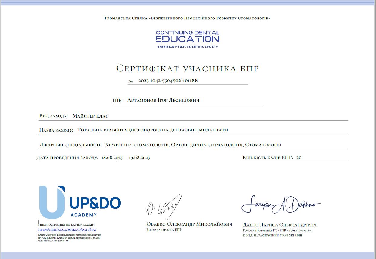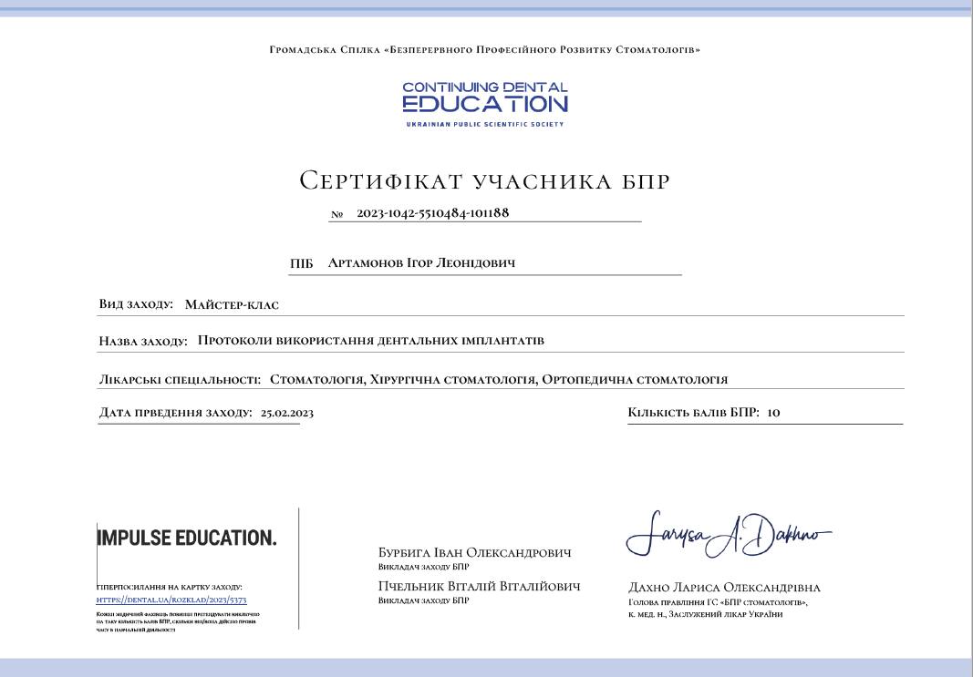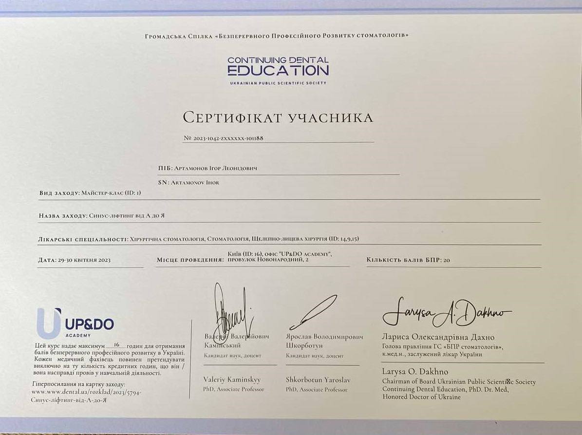2015 – Базовий лекційно-практичний дводенний курс «Основи дентальної імплантації: крок за кроком до успіху»